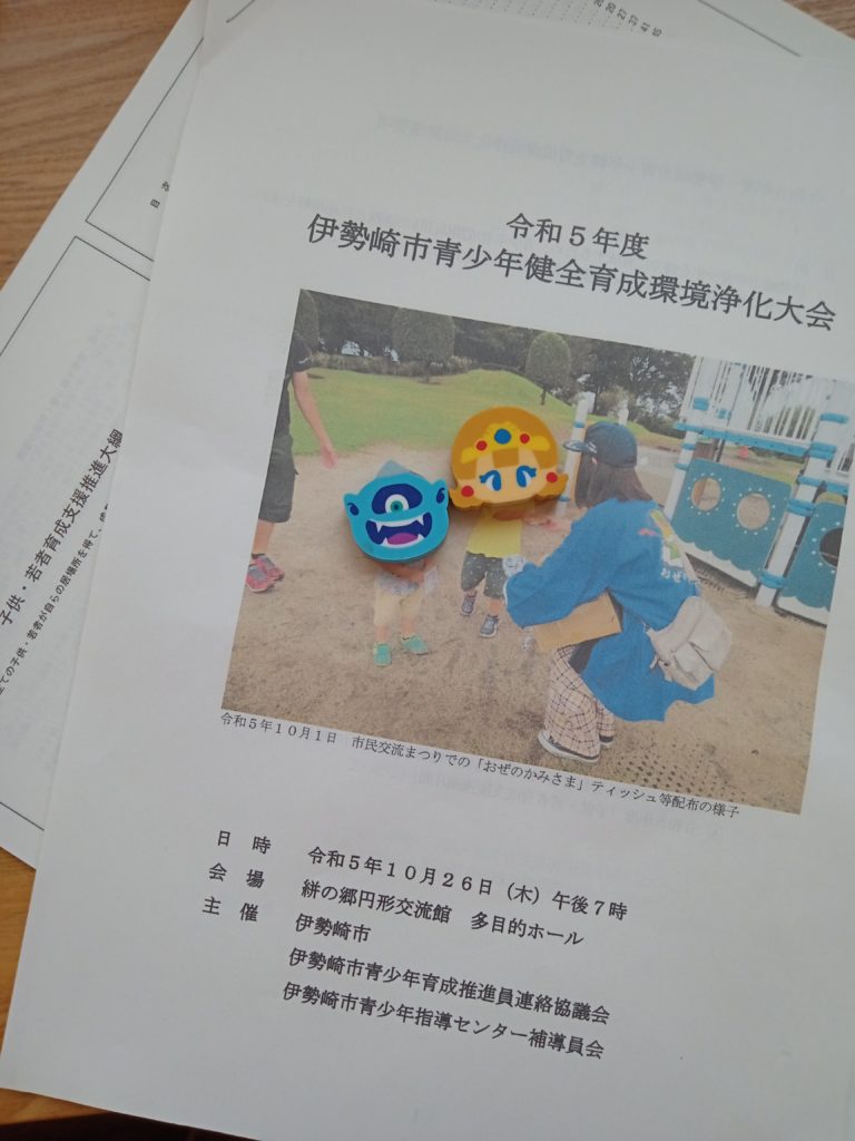 伊勢崎市青少年健全育成環境浄化大会 PTA活動 2023.10.27 絣の郷で開かれた同大会に参加してきました。 子供・若者のために、たくさんの団体、地域の皆さんがご尽力なさってくれています。宮小PTAも子供の健やかな成長の一助になれるよう、今後も活動してまいります。