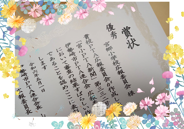 その席上、昨年度の「宮小PTA新聞」が優秀賞に選ばれたということで、表彰を受けました。