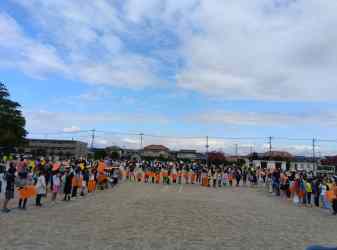記念に校庭で人文字を作って、ドローン撮影を行いました。