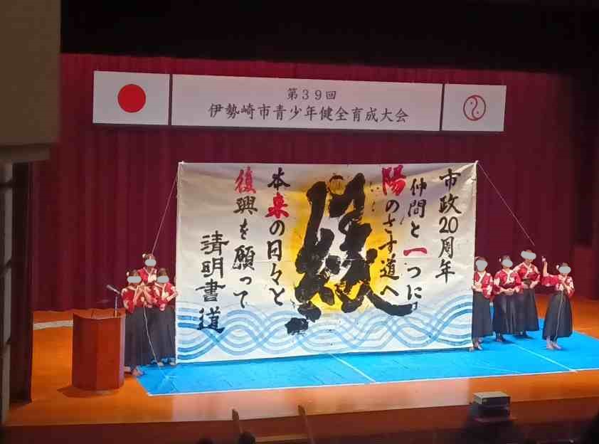 大会では、清明高校書道部によるパフォーマンスも行われました。