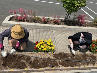 公民館の花壇の花植え作業のお手伝いをしてきました