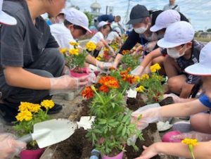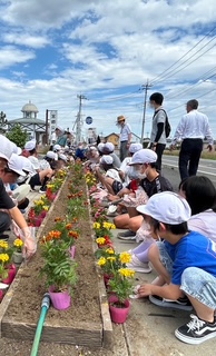PTA活動公民館の花壇の花植え作業のお手伝いをしてきました