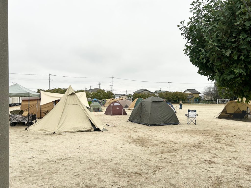 あら不思議!!校庭がキャンプ場になっちゃいました。