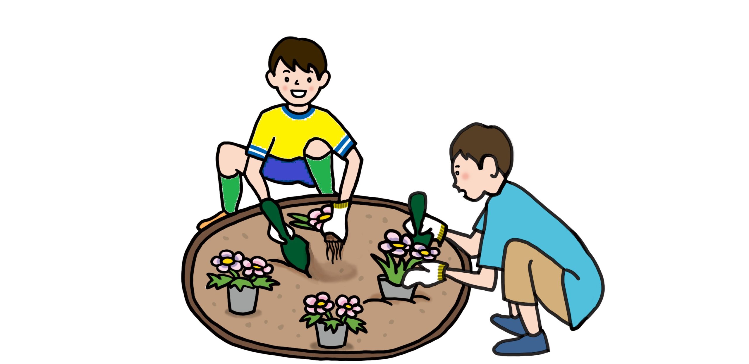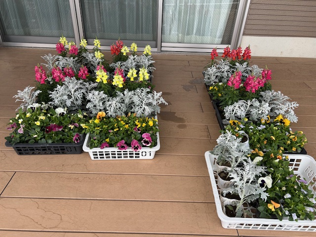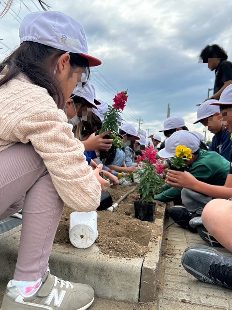秋は、🌹ビオラ・パンジー・白妙菊・金魚草🌼の4種類を植えました。今回も5年生にお手伝いをしてもらいきれいな秋の花壇の出来上がりました。