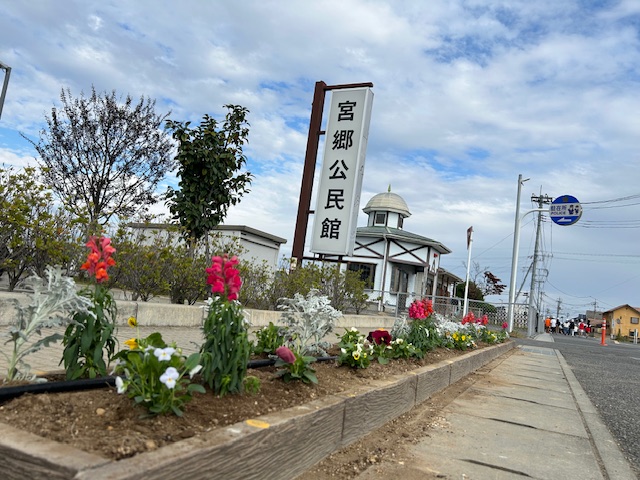 朝晩とようやく秋の肌寒さを感じる季節になってきました。公民館の花壇も10月24日、宮郷幼稚園児・宮郷小学生・宮郷中学生と地域、各PTA、委員会の方々でとても素敵な花壇に変身しました。