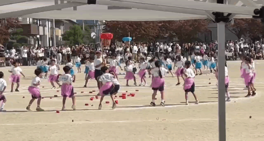 1年生はチェッコリ玉入れです。今年6年生の皆はコロナ禍の為 踊れなかったダンスです。かわいいですね✨